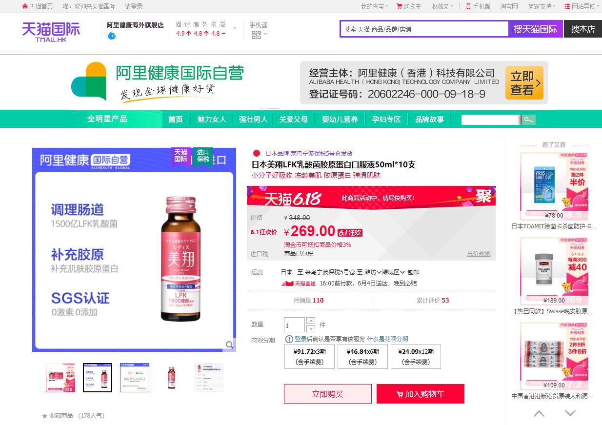 目前 天貓 可通過 阿裡健康海外旂艦店 平颱購買